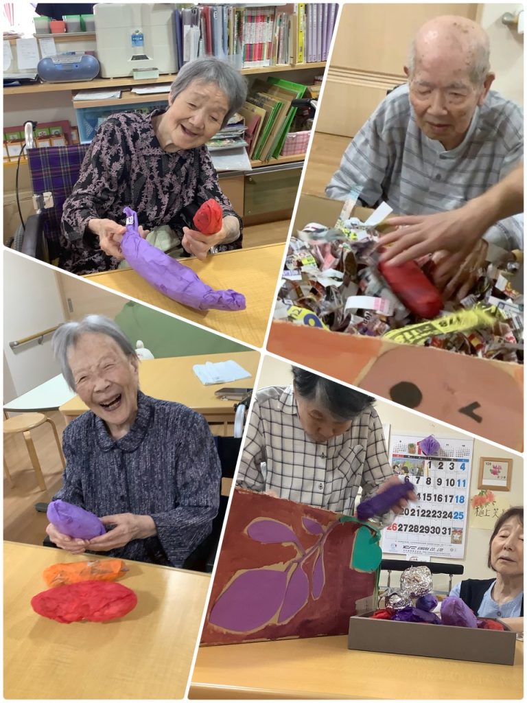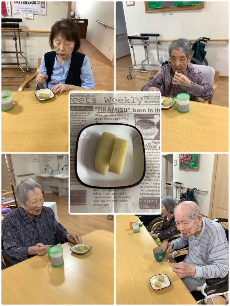 おやつには掘った芋🍠で職員が芋羊羹を作りました。🥹