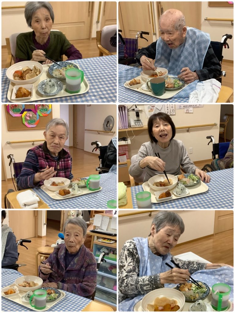 一年の労をねぎらい、職員と一緒に食事をしたりゲームをしたりと楽しく過ごしました。
