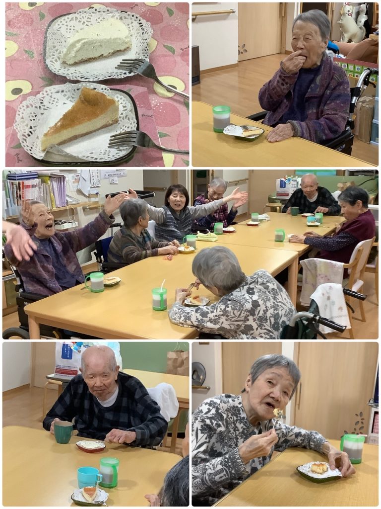 おやつには職員手作りのチーズケーキ🧀です。