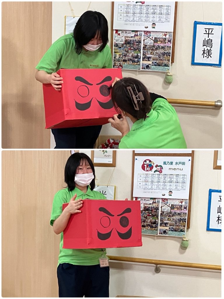 右目に目を書いて、皆さんはが元気に過ごせますよう祈願し目を書いて終わりました。
